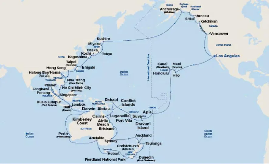 🛳️ 114-Day Voyage – Roundtrip from Los Angeles (Departs Jan 21, 2027)